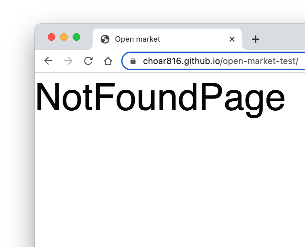 배포 페이지에서는 다음과 같이 홈페이지를 잘 입력했음에도 불구하고 NotFoundPage가 렌더링되었다.