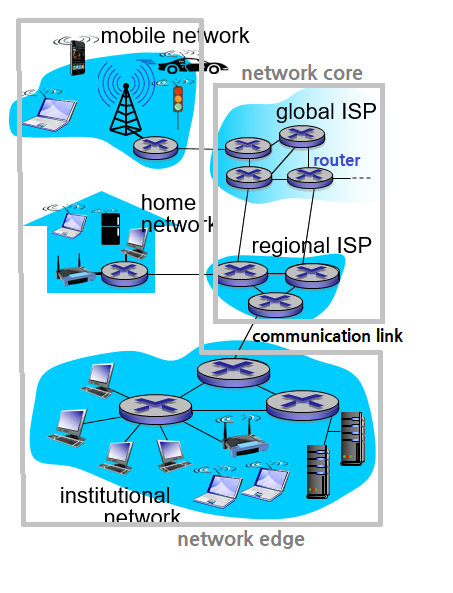 네트워크는 크게 네트워크 엣지, 네트워크 코어로 이루어진다.