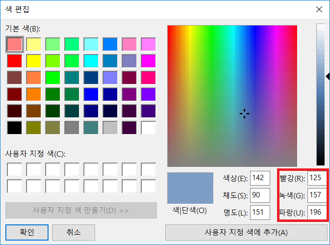 5. '색 편집' 메뉴에서 색상의 RGB 정보를 알아낸다.